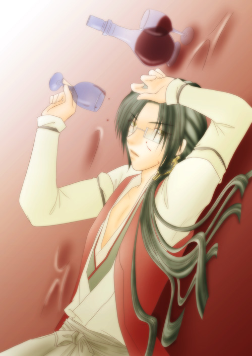 よくよく考えたら、あの時代、ワインのボトルとかグラスってどんなだったけー? 確か悪代官の屋敷とかにあるようなやつだよね? というわけの解からない方向に転んだんですが、イマイチいい資料がなかったのでシンプルに。